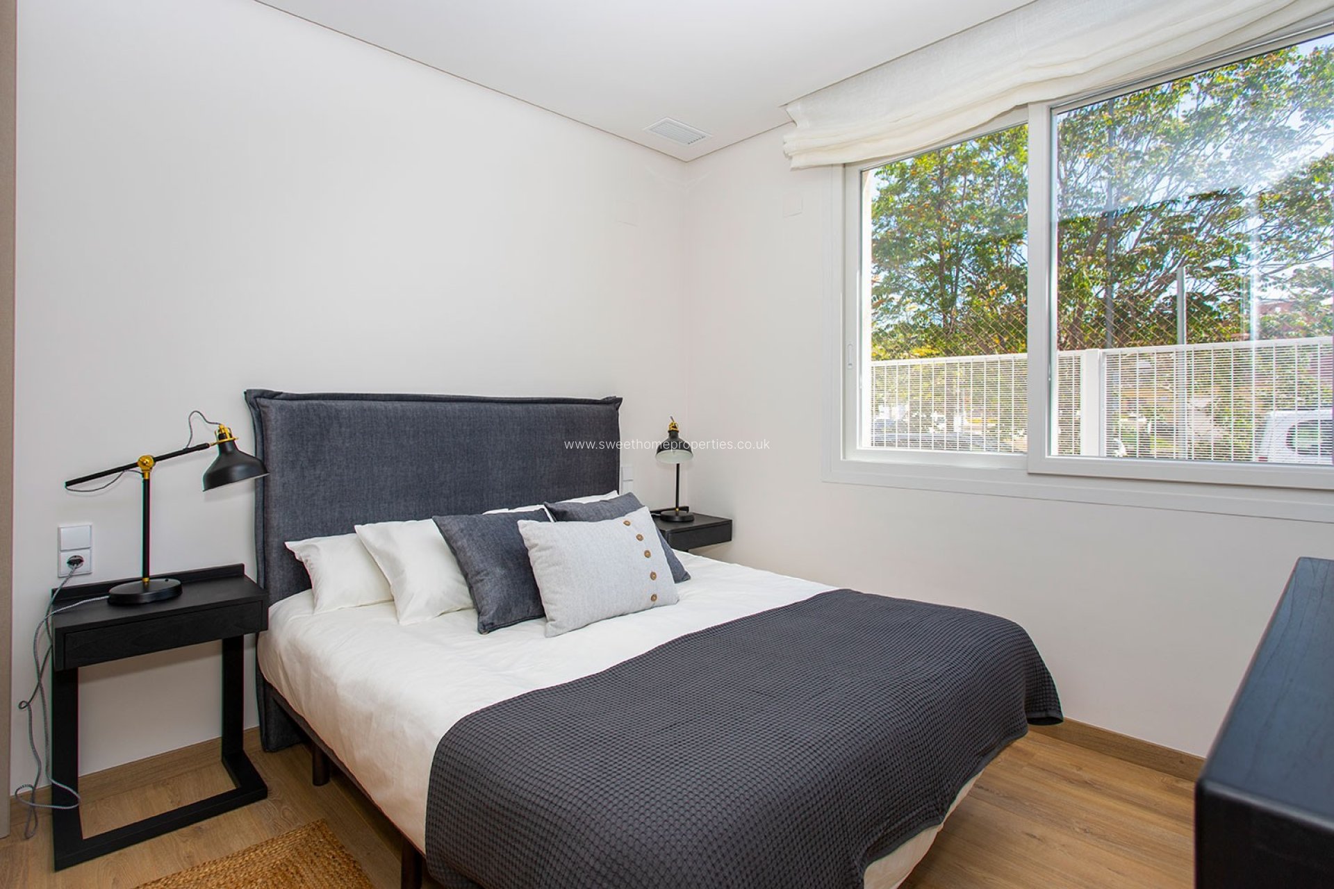 Estas bonitas villas disponen de cocina totalmente amueblada, con encimera de granito o aglomerado sintético, pavimento de gres porcelánico o tarima flotante en el interior, puerta de acceso blindada, y escayolas lisas en techos.