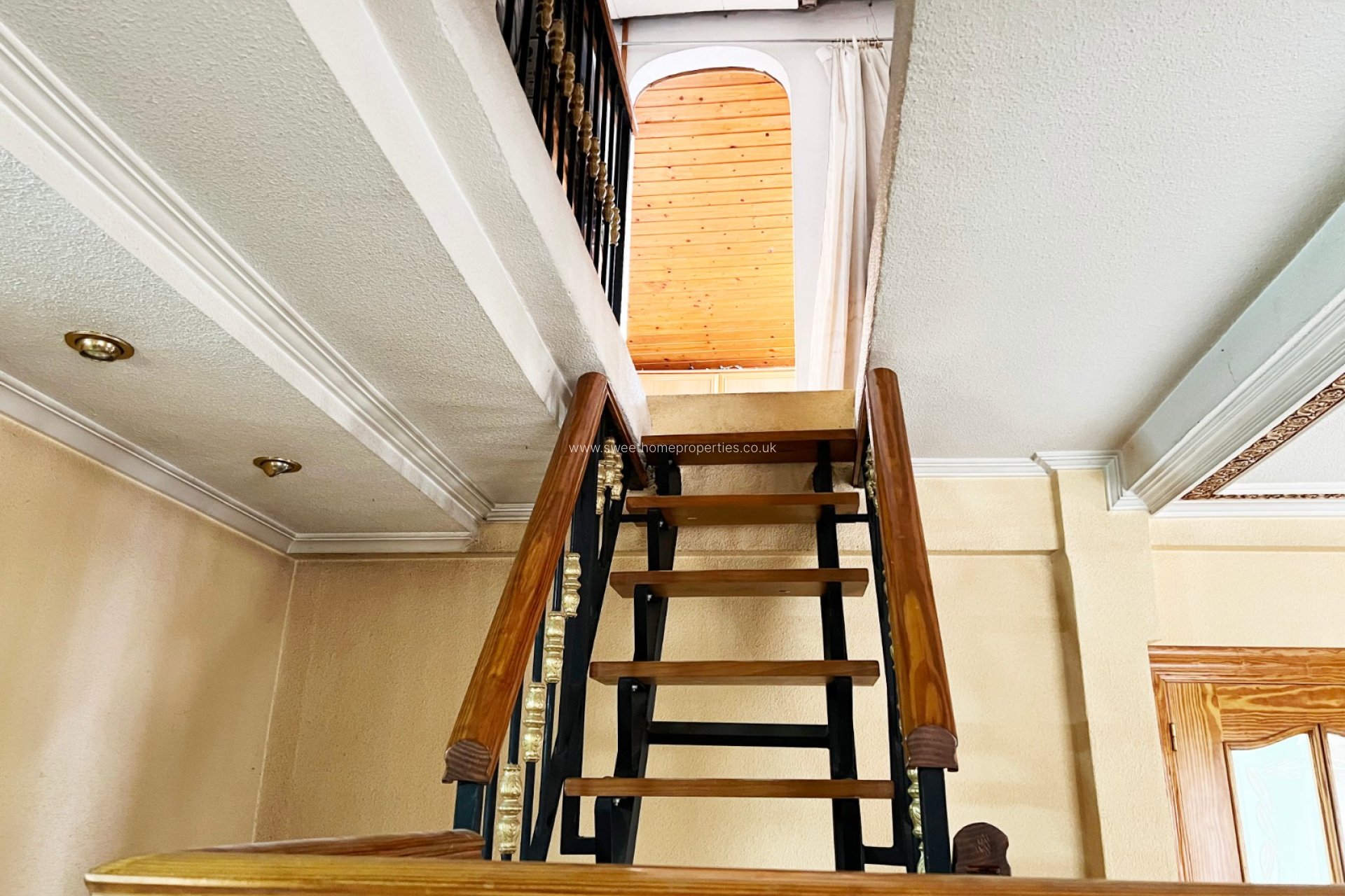 La casa se distribuye en dos plantas, cada una con su propio carácter. Accedemos a la primera planta a través de una elegante escalinata que nos conduce a un balcón panorámico con vistas de 360º. Al entrar, nos recibe un amplio y luminoso salón comedor con cocina abierta completamente equipada. Tres generosos dormitorios con armarios empotrados y un baño familiar completan este nivel. Desde el comedor, una escalera metálica nos lleva a una buhardilla, actualmente utilizada como trastero.