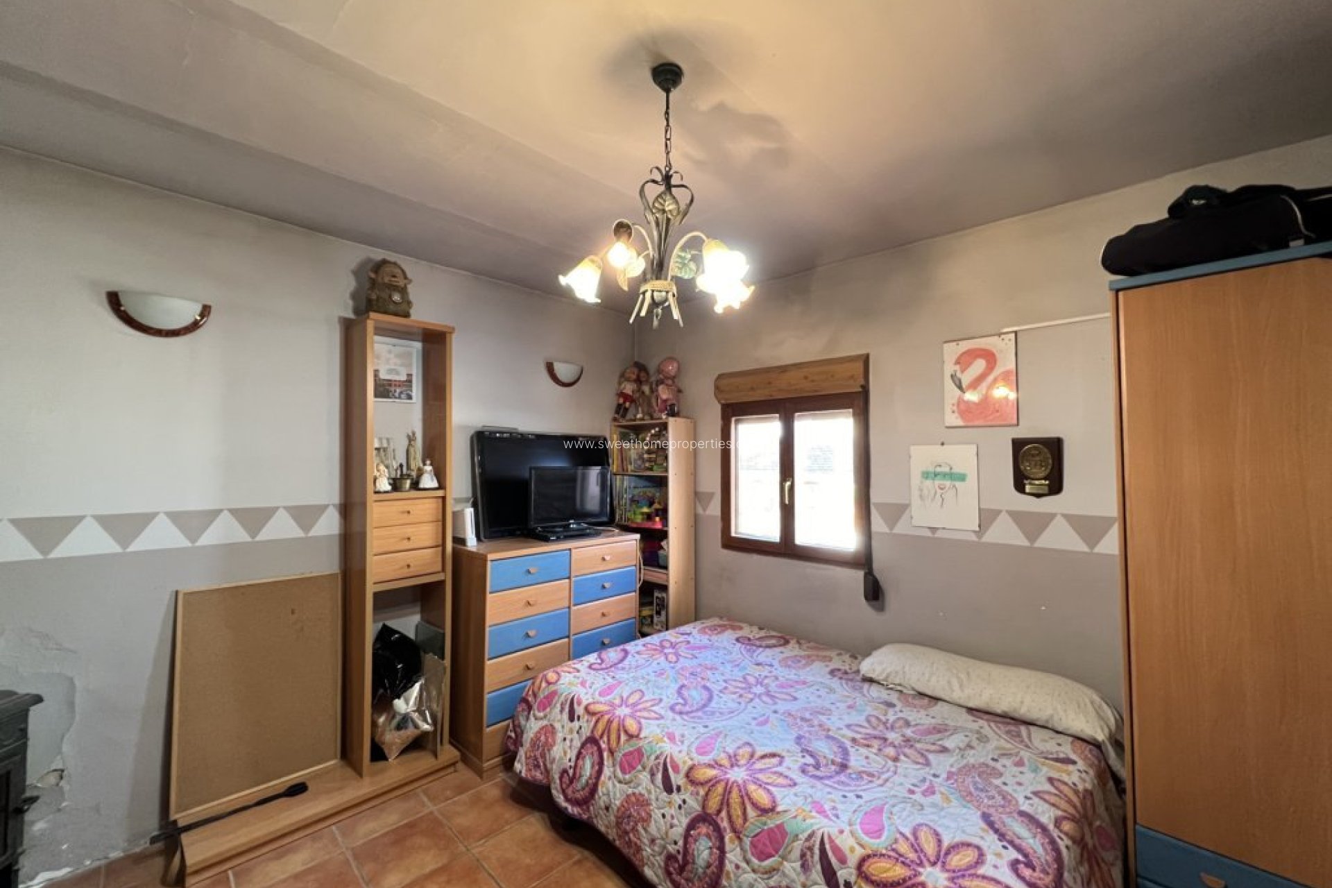This detached country house sits on a fenced and gated 900m2 plot.... in a unbeatable location with beautiful countryside views and of the surrounding mountains. The property has 3 bedrooms, 2 bathrooms, a kitchen, living-dining room with fireplace and a sitting room (which could be changed into a 4h bedroom). The bedrooms are all upstairs, two of them have private terraces. Outside there is a nice garden surrounding the house. The property has been modernised and is ready to be lived in, but some areas would benefit from updates still, but nothing urgent, mainly cosmetic. The villa has mains water and electric but also has solar panels, mosquito nets and air conditioning.