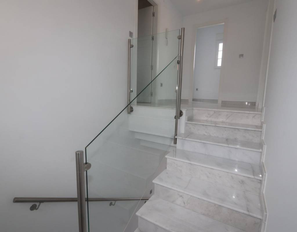 ventanas.Gran ventana fija en la escalera para luz adicional.Escalera de mármol (crema, blanco o gris) y barandillas incluidas, más barandillas para el porche delantero.Las cocinas incluyen armarios con puertas y tiradores estándar, según los planes proporcionados, fregadero y grifo de acero inoxidable,